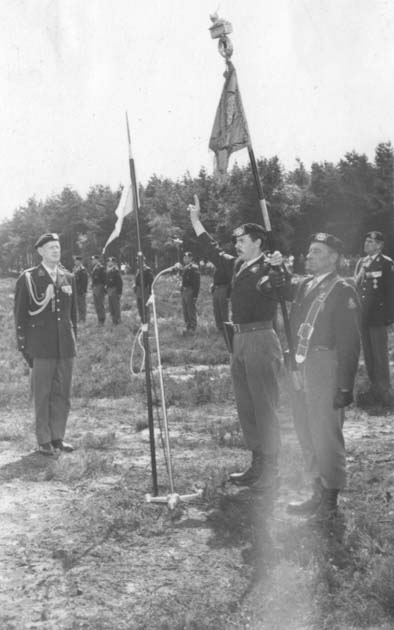 Deze foto is gemaakt op de Elspeterheide 4 juli 1968 vlak voor ons afzwaaien, We hadden als A-Esk al onze tanks opgeknapt voor de volgende lichting en we wisten niets van het feit dat onze Cornetten beedigd zouden worden als res. Tweede Luitenant. De tanks stonden te blinken wat waren we trots tot we te horen kregen dat we naar de heide moesten vooreen parade, flink balen natuurlijk. Achteraf viel het mee want we hoefden niets meer aan de tanks te doen, onze opvolgers zullen ook flink gebaald hebben van zo`n laag zand in de tank.